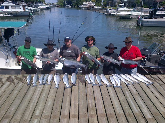 I was invited back to the Dofasco Angling Club to speak on a topic of Salmon and Trout on Lake Ontario. President Bill Jefferies recommended my charter service to his son Phil (the Best Man) to arrange a bachelor Charter for his brother Matt (the Groom to be). Months before the date we planned to accommodate 6 men and it included hiring Brent Bochek of Fish NV Guiding Service to host 3 and I would host 3.